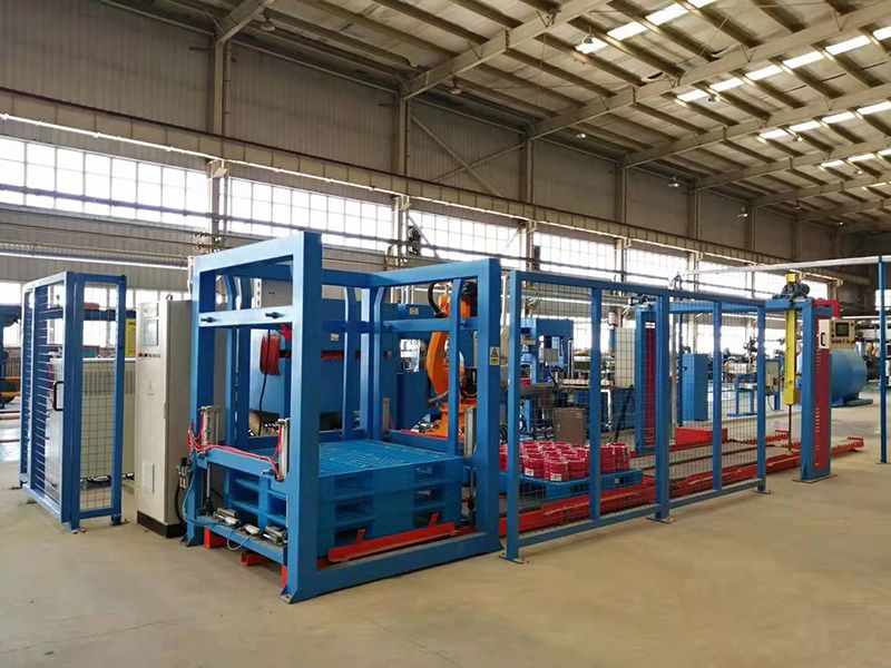 Una vez que el proceso de enrollado del cable se ha completado, nuestro sistema automatizado, basado en un robot de coordenadas cartesianas, se encarga de separar de manera automática los palets llenos de la zona de paletizado. Al mismo tiempo, los palets vacíos son dirigidos hacia la zona de paletizado de las bobinas de cable. Nuestro paletizador cartesiano tiene un diseño muy detallado para lograr un paletizado y despaletizado de bobinas de cable muy eficiente.