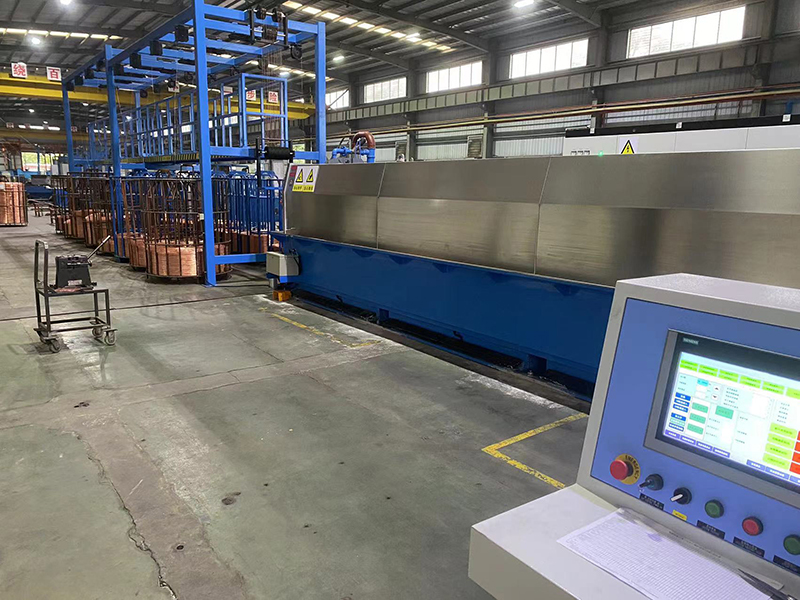 Diseñada para la eficiencia y la precisión, la trefiladora multialambre con recocido procesa múltiples hebras de alambre de cobre simultáneamente. Puede manejar de 8 a 24 hebras de alambres de cobre con bajo contenido de oxígeno o sin oxígeno de ⌀1.6 a 3.5mm, así como cables de cobre de estaño galvanizados, transformándolos en 8 a 24 hebras de alambres de cobre de ⌀0.15 a 1.05mm mientras realiza el recocido. Los alambres terminados están cuidadosamente enrollados en carretes, listos para usar.